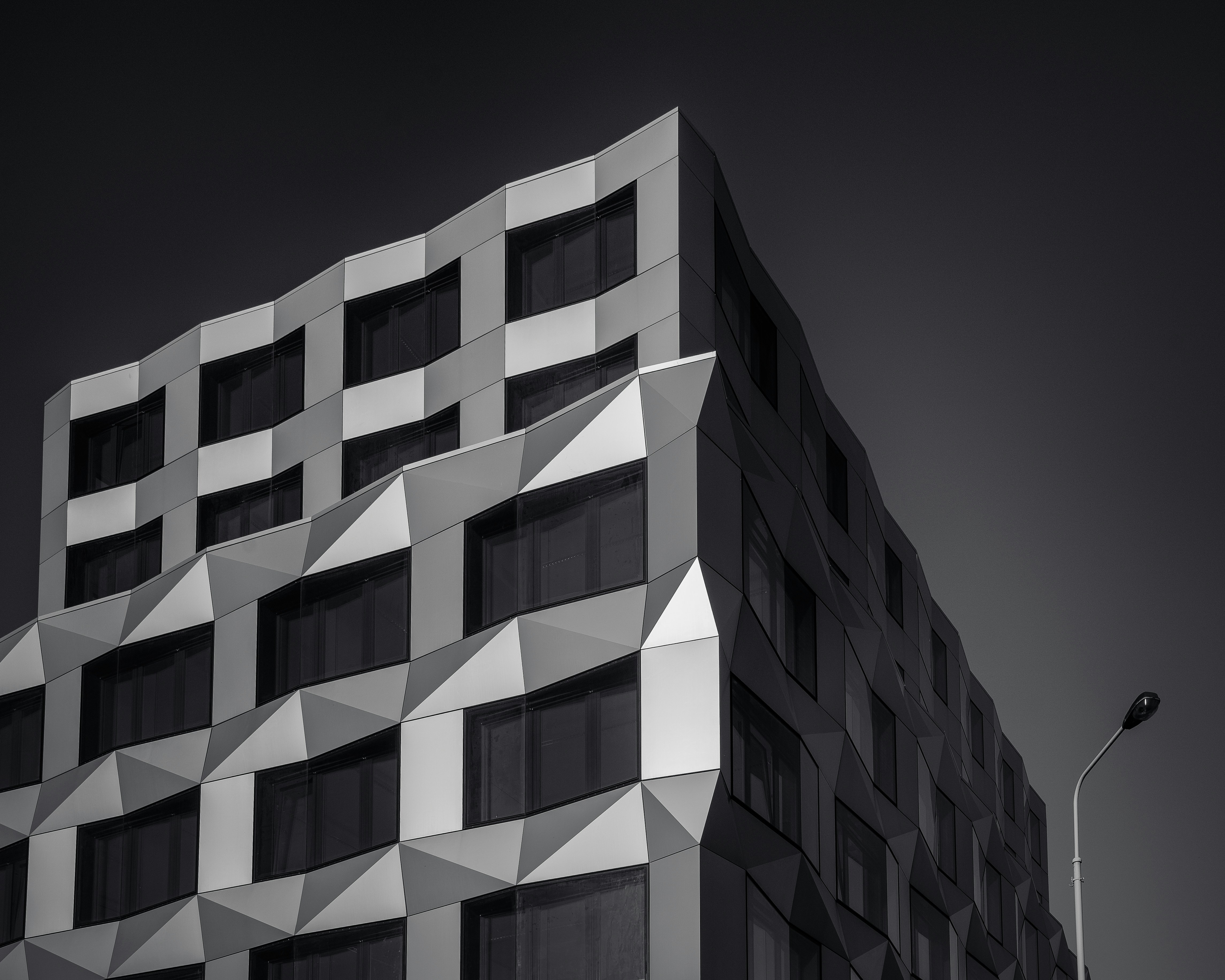 New modern architecture of Karlin district, Prague. After the devastating flood in 2002, several administrative buildings were built in this part of Prague. The β€œKeystone office” building is one of them.